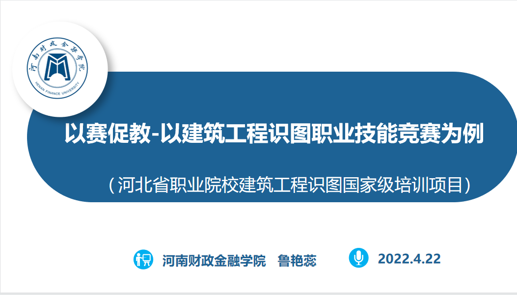 4月22日,我院建筑设计专业鲁艳蕊老师受邀请为河北省国培2021年度职业院校教师素质提高计划技能大赛指导教师课赛融合与技能训练培训--建筑工程识图项目授课专家。此次培训由河北省教育厅主办,石家庄铁路学院承办,来自全省40所职业院校的70名学员参加。鲁艳蕊老师主讲的内容是《以赛促教-以建筑工程识图赛项为例》、《建筑工程识图国赛真题解析》,共计8学时。